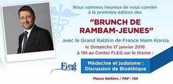 J'ai le plaisir de vous annoncer la naissance de la section "Jeunes" de RAMBAM FRANCE. Sa première manifestation a eu lieu le dimanche 17 janvier 2016 au Centre Edmond Fleg, á Paris, avec la participation du GRF Haïm KORSIA, sur le thème : "MEDECINE ET JUDAÏSME".